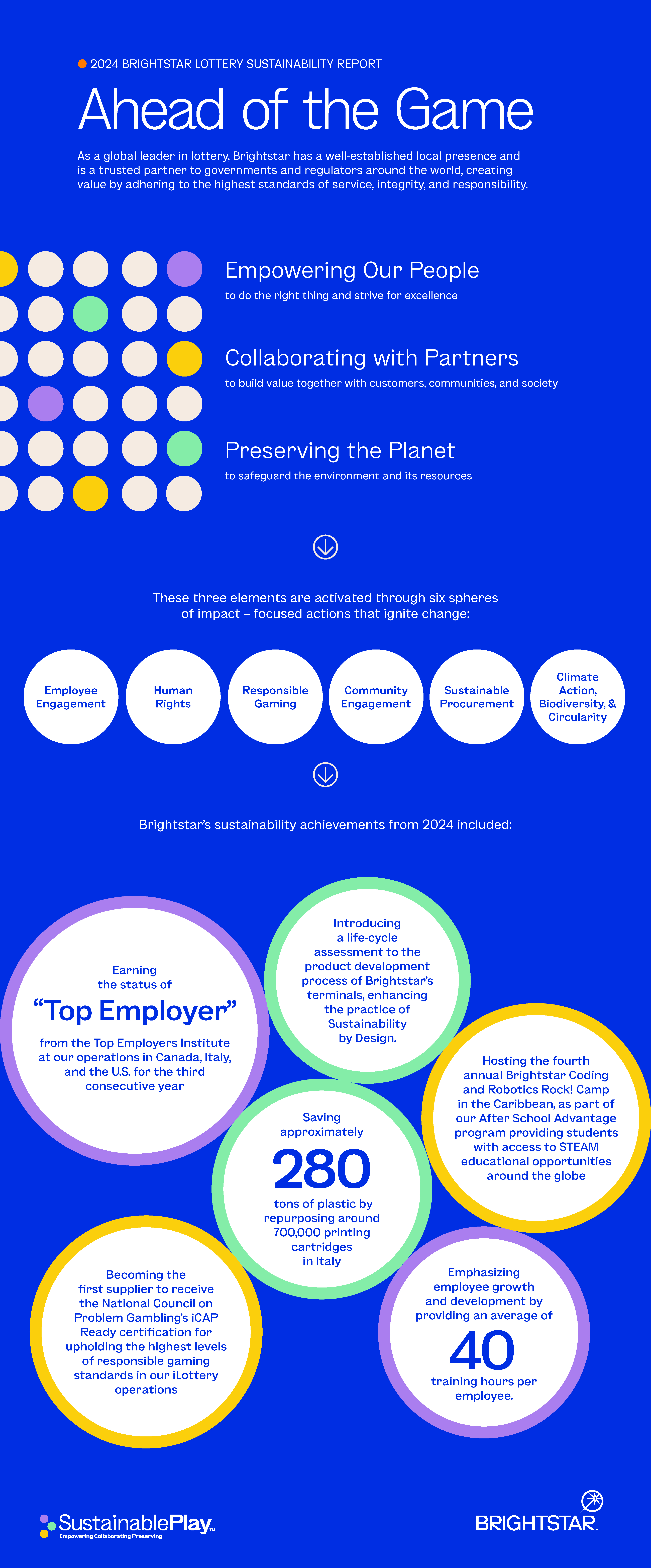 Brightstar Lottery is a forward-thinking global leader in lottery with experience as a system provider, game creator, omnichannel technology provider and lottery operator, providing best-in-class retail and digital solutions and award-winning games. Our expertise in lottery technology, sales, operations, product development, instant lottery systems and iLottery enables our customers to excel and distinguish their lotteries from all other forms of gaming.